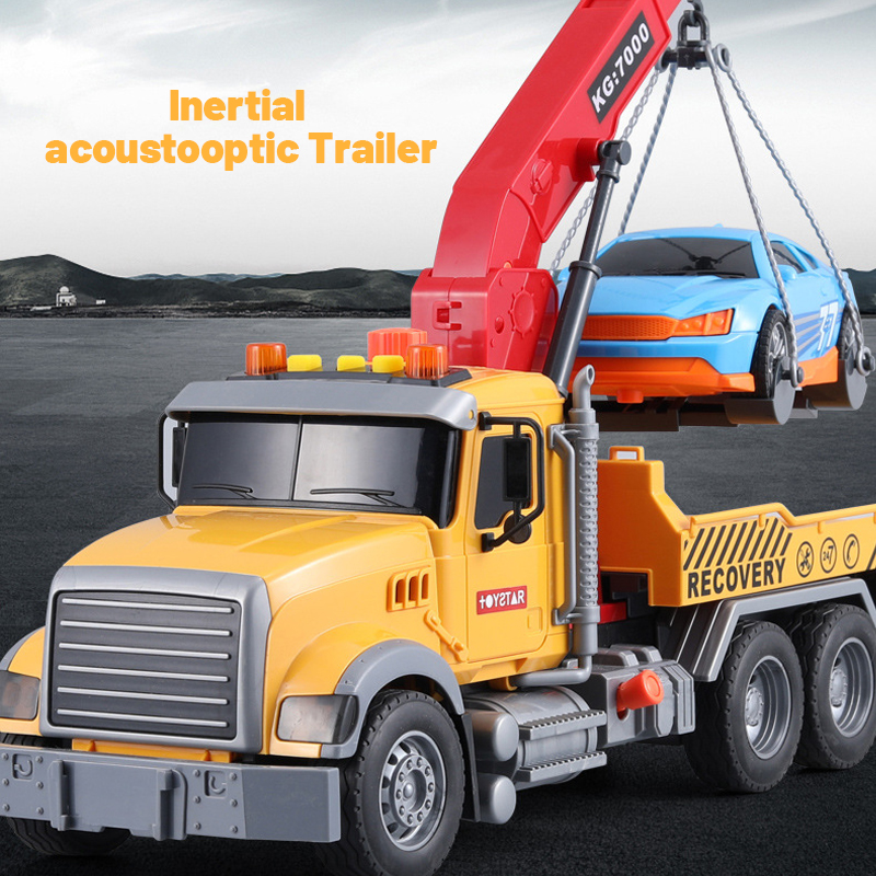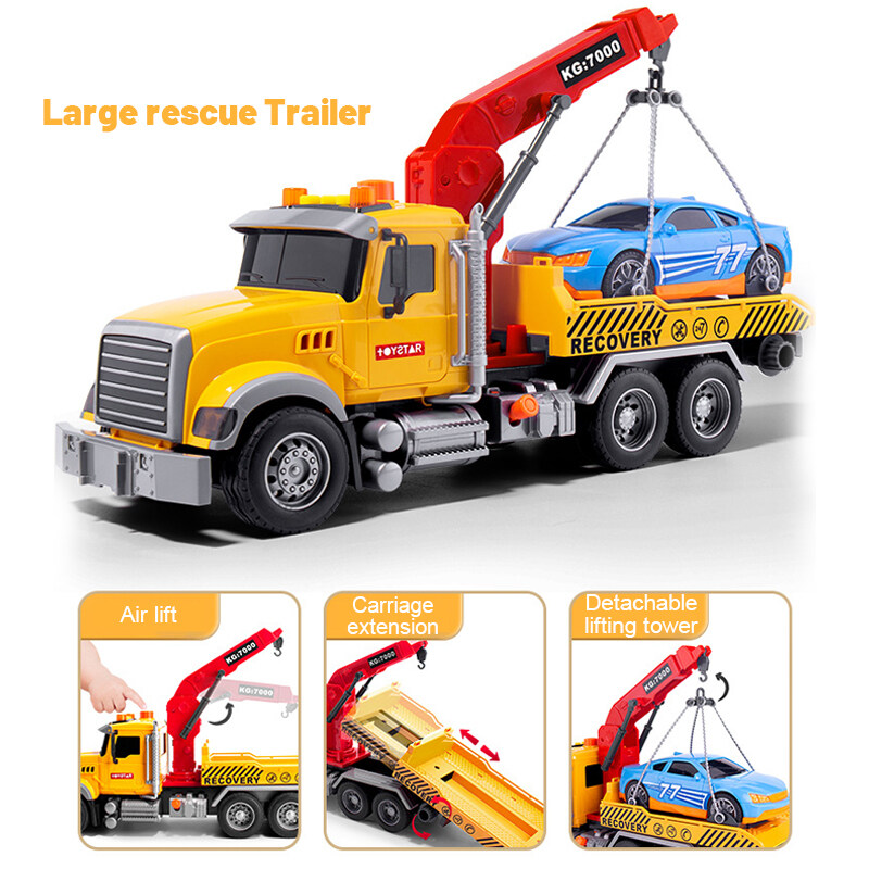 Boy Trailer Toy Crane Children's Car Large Crane Flat Road Wreckage Engineering Transport Rescue Vehicle