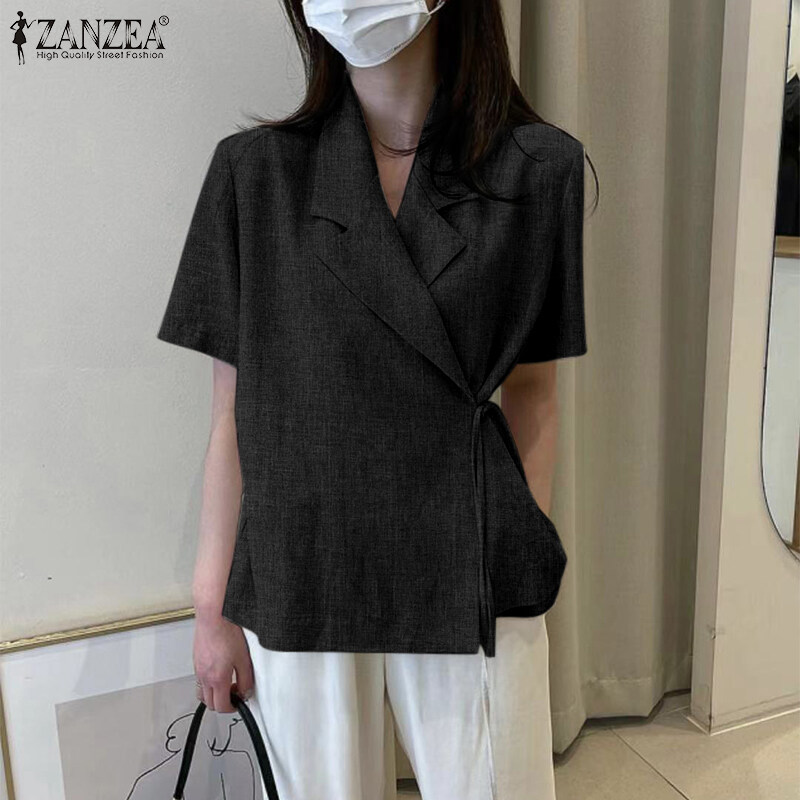 ZANZEA Korean Style Womens Short Sleeve Slims Business Office Plain Lace-up Blazer Suits