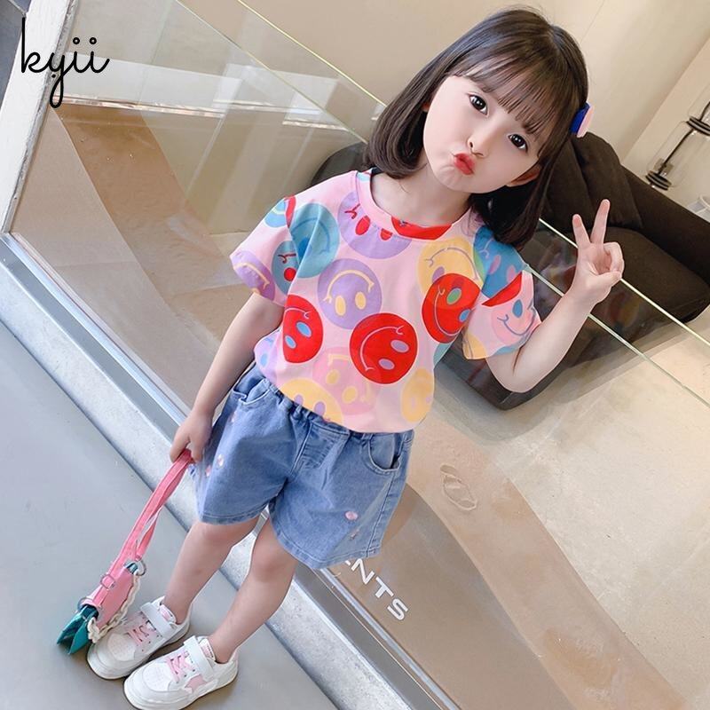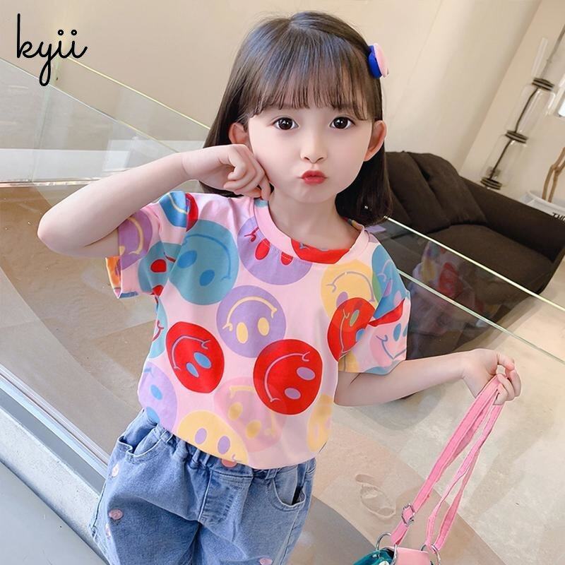 KYII Girls short sleeve summer children Cotton Korean Round-neck Top kyii0172