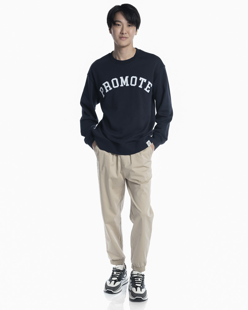 Regular Solid Colour Long Sleeve Sweatshirt with Round Neck. Comes with "Promote" Slogan Embroidery Patch at the front.