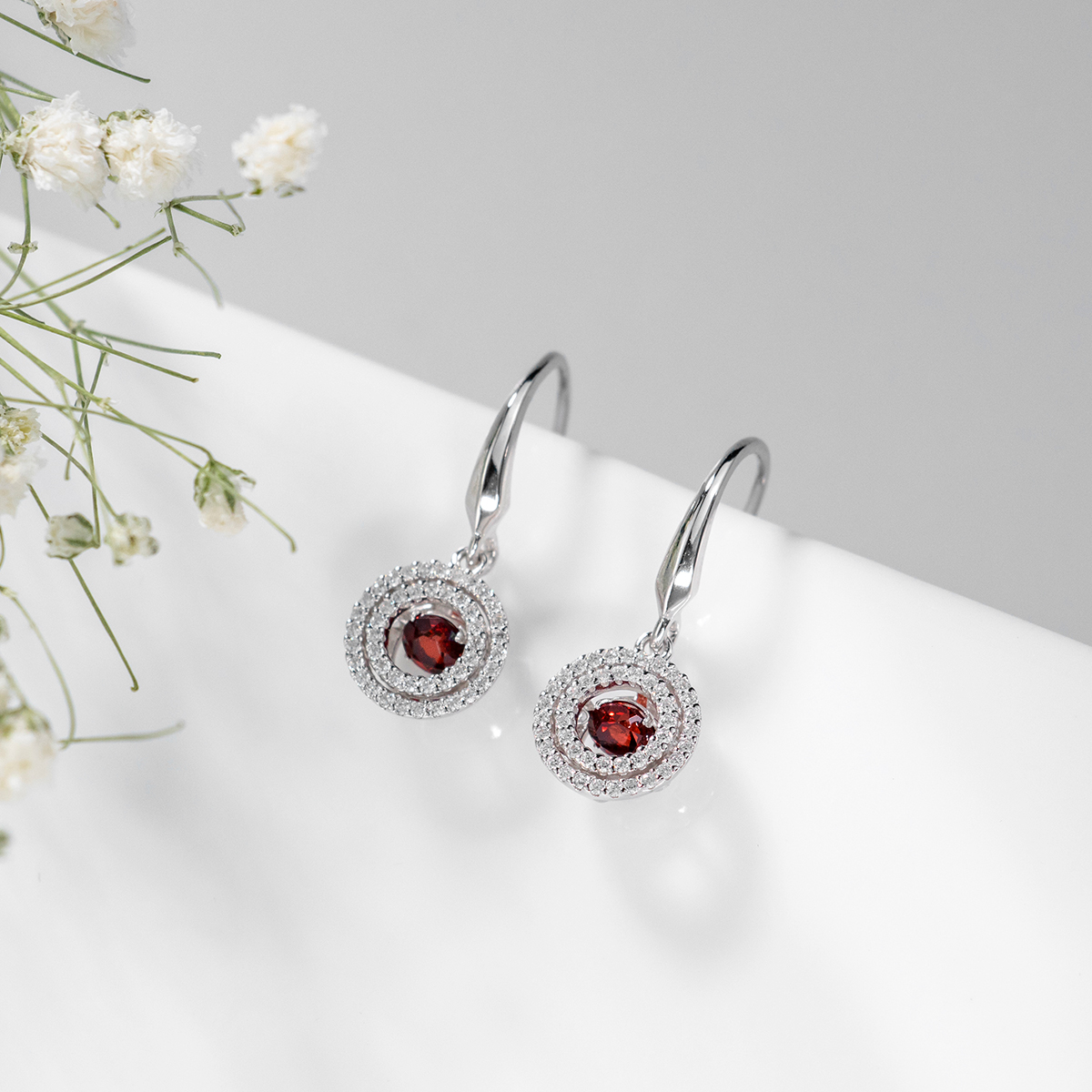 Original Sterling Silver 925 Drop Earring Natural Red Garnet Gemstone Elegant Style Women Jewelry Birthday Gift
