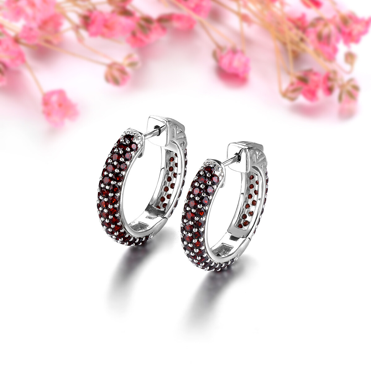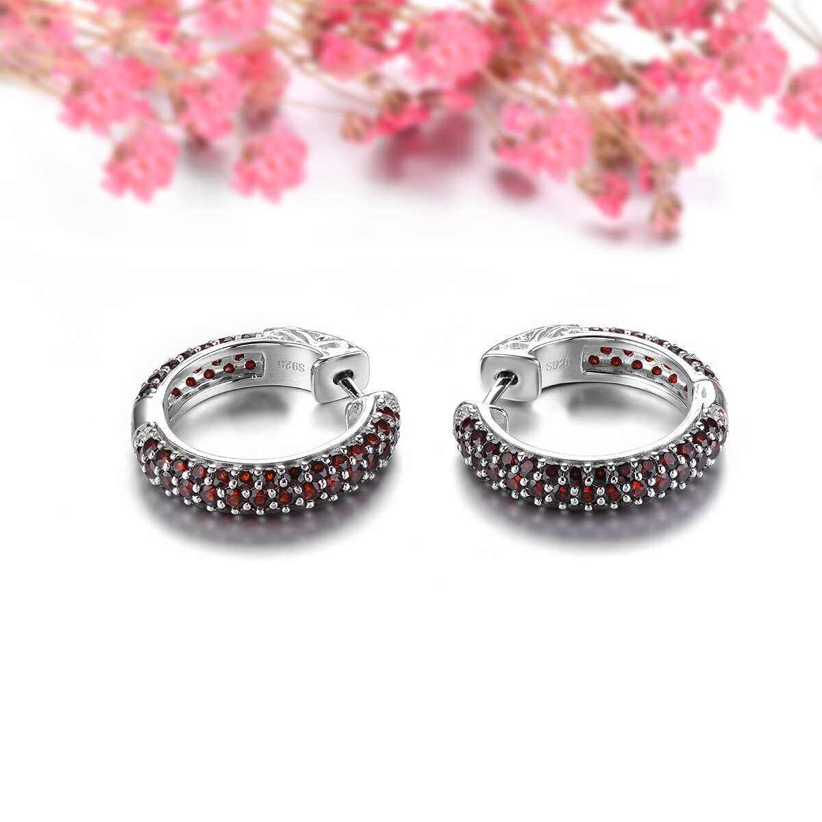 Lohaspie Jewelry Real 5.2 Carats Earring Silver 925 Original Natural Garnet Clip Earring Red Round Cut Gemstone Birthstone Garnet Earring For Women Jewelry Christmas Gift